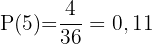 {P(<5)=\displaystyle\frac{4}{6}=0,67}[/latex]