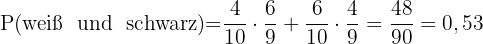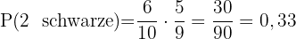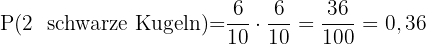 schwarze Kugeln enthält, werden zwei Kugeln nach dem Zufallsprinzip ohne Zurücklegen entnommen. Berechne die Wahrscheinlichkeit, dass:
