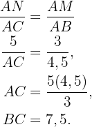 Zuerst berechnen wir die Hypotenuse des ersten rechtwinkligen Dreiecks mithilfe des Satzes des Pythagoras und anschließend berechnen wir die Katheten des zweiten Dreiecks anhand des Ähnlichkeitsverhältnisses.