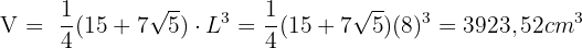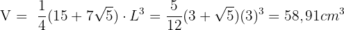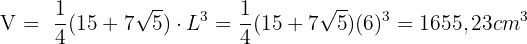 Es genügt, die uns bekannten Formeln für Fläche und Volumen des Dodekaeders anzuwenden.