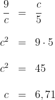 Zunächst einmal sehen wir, dass es sich um ein rechtwinkliges Dreieck handelt, sodass wir den Katheten- und den Höhensatz anwenden können.