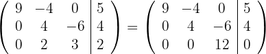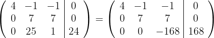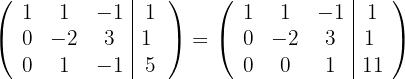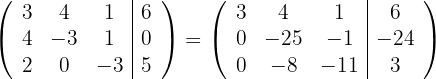 1Wir schreiben in Matrizenform. Wir ersetzen die Zeile