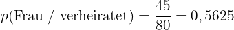 - Wenn der oder die Gewinner*in bekanntlich verheiratet ist, wie groß ist dann die Wahrscheinlichkeit, dass es sich um eine Frau handelt?