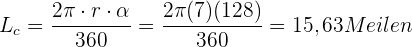 Ein Leuchtturm beschreibt mit seinem Licht einen flachen Winkel von 128°. Wenn die maximale Reichweite des Leuchtturms 7 Meilen beträgt, wie groß ist dann die maximale Länge des entsprechenden Bogens in Metern?