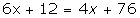10x + 10 + x = 12 x + 6