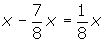 x steht für das Fassungsvermögen des Kanisters und da du bereits 7/8 seines Fassungsvermögens verbraucht hast, bleibt folgendes übrig: