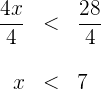 zu bestimmen, dividieren wir beide Seiten der Ungleichung durch