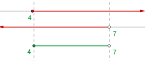 7Die Lösung für die Ungleichungen ist die Schnittmenge der zwei Lösungen. Also alle Punkte, die beide gemeinsam haben