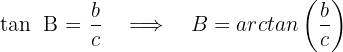 sind bekannt. Um den spitzen Winkel, die verbleibende Kathete und die Hypotenuse zu ermitteln, berechnen wir