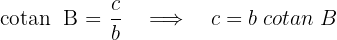 sind bekannt. Um die fehlende Kathete und die beiden spitzen Winkel zu finden, berechnen wir