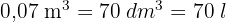 | Kubikdezimeter | dm³ | 0,001 m³ |