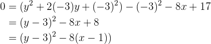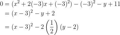 Durch Vereinfachen des Ausdrucks erhält man die Gleichung für eine gewöhnliche Parabel mit rechtsseitiger Öffnung: