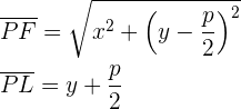 befinden sich auf der Parabel, wenn ihr Abstand zum Brennpunkt derselbe wie zur Leitlinie ist, das heißt: