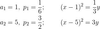 Berechne anhand der vorgegebenen Parabelgleichungen die Koordinaten ihres Scheitelpunkts, ihres Brennpunkts sowie die Gleichungen der Leitlinien.