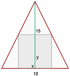 Ermittle die Maße des größten Rechtecks, das in ein gleichschenkliges Dreieck mit der Basis und der Höhe