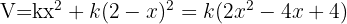 . Die Werte der einzelnen Teile sind also latex]kx^{2},\quad k(2-x)^{2}.[/latex] Und die Funktion, die wir optimieren wollen, ist durch die Summe dieser Werte gegeben, nämlich