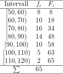 Wir suchen in der Spalte der kumulierten Häufigkeiten das Intervall, in dem sich