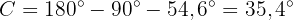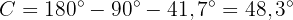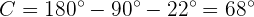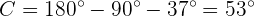 Da zwei von drei Winkeln bekannt sind, können wir den fehlenden Winkel direkt berechnen