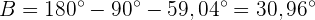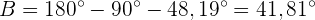 Da zwei Winkel bekannt sind, können wir den Dritten, , direkt berechnen: