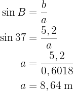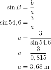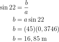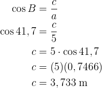 Wir berechnen den Sinus und den Kosinus des Winkels Calcularemos el seno y el coseno del ángulo . Hierfür nehmen wir den Wert des Winkels und der Katheten sowie der Hypotenuse. So können wir schließlich die Katheten
