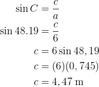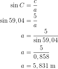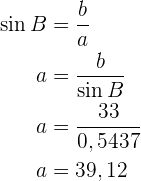 Um die Seite zu erhalten, wenden wir den Sinus auf den Winkel