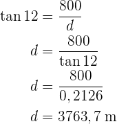 Wir möchten herausfinden, wie weit das Luftschiff vom Dorf entfernt ist. Wir müssen also die Kathete berechnen. Hierzu berechnen wir den Tangens des Winkels mit dem Wert
