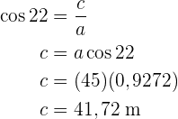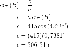 Um die Seite zu erhalten, wenden wir den Kosinus auf den Winkel