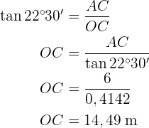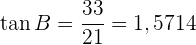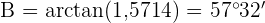 Um das Problem zu lösen, berechnen wir zunächst den Tangens des Winkels von und den zugehörigen Katheten. Danach berechnen wir den Tangens des Winkels von