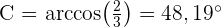 Wir wenden den Arkuskosinus an und erhalten . Da wir zwei Winkel bereits haben, können wir den Dritten direkt berechnen