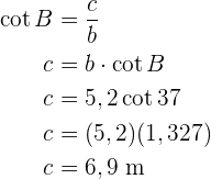 Um die Seite zu erhalten, wenden wir den Kotangens auf den Winkel