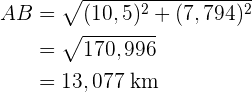 Zur Berechnung der Hypotenuse wenden wir den Satz von Pythagoras an. Die Katheten, die wir hierfür nutzen, sind und