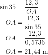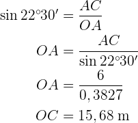 Um den Radius zu ermitteln (Seite), wenden wir den Sinus auf den Winkel an, der