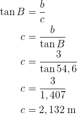 Wir berechnen den Tangens des Winkels . Hierfür nehmen wir den Wert des Winkels sowie der Katheten und können so schließlich die Kathete