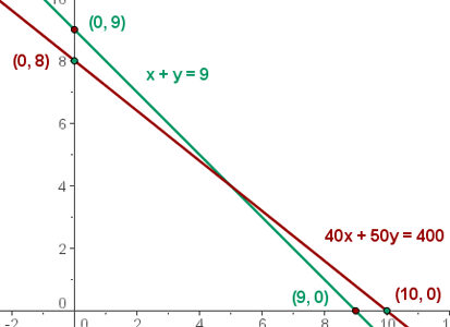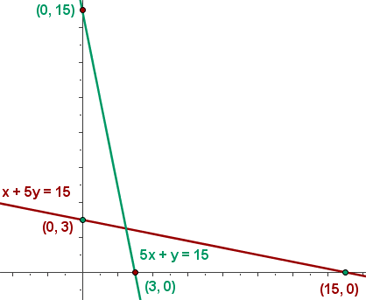 Wir stellen die Geraden ausgehend von ihren Schnittpunkten mit den Achsen dar.