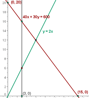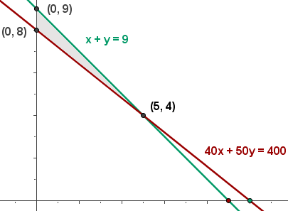 5 span> Wir berechnen die Koordinaten der Scheitelpunkte des Bereichs der durchführbaren Lösungen.