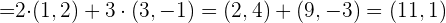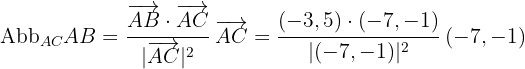 Setzt man die Werte der beiden Vektoren in die letztgenannte Gleichung ein und führt die entsprechenden Rechenschritte durch, erhält man: