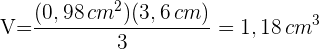 Eine dreieckige Pyramide, deren Grundfläche ein gleichseitiges Dreieck mit einer Seitenlänge von 1,5 cm ist, hat eine Höhe von 3,6 cm und das Apothema der Grundfläche misst 0,43 cm. Berechne das Volumen und die Gesamtfläche dieser Pyramide, gerundet auf zwei Dezimalstellen.