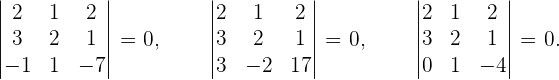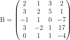 4 Sie hat den Rang größer oder gleich 3, wenn es eine beliebige quadratische Untermatrix der Ordnung 3 gibt, so dass ihre Determinante nicht 0 ist. Berechnet man in diesem Fall die Determinanten aller Untermatrizen der Dimension 3, so ergibt sich, dass