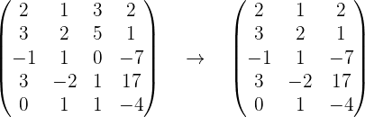 1 Wir streichen die dritte Spalte, weil sie eine lineare Kombination der ersten beiden Spalten ist,