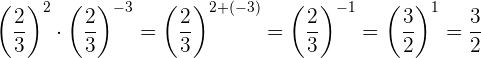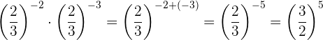 CDa die resultierende Potenz einen negativen Exponenten hat, ist die Potenz gleich dem Kehrwert der Basis mit positivem Exponenten. Schließlich hat die resultierende Potenz den Exponenten 1, so dass die Potenz gleich der neuen Basis ist