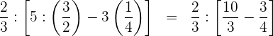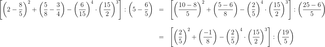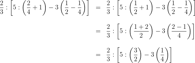 1 Wir vereinfachen die Brüche, wo es möglich ist, und fahren mit der Addition und Subtraktion innerhalb der Klammern fort