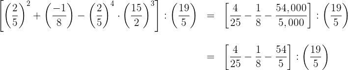 2 Wir führen die Multiplikationen, Divisionen und Potenzen innerhalb der eckigen Klammern aus
