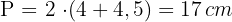 Der Umfang eines Rhomboids ist gleich der Summe seiner Seiten, d. h.