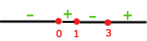 Die Nullstellen sind 1, 3 und 0. Dies teilt die Zahlegerade in folgende Intervalle: