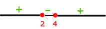 Wir lösen die Gleichung und die Nullstellen sind 2 und 4