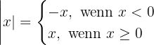 Eine abschnittsweise definierte Funktion ist eine Funktion, die auf verschiedenen "Abschnitten" (oder Zahlenmengen) unterschiedliche Definitionen hat. Zum Beispiel die Betragsfunktion, die wie folgt beschrieben wird: