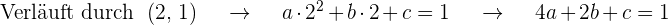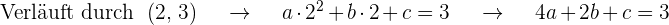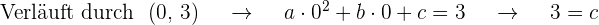 einsetzen und gleich dem Wert der Ordinate der Punkte, die durch den Graphen gehen, gleichsetzen