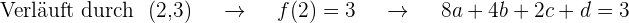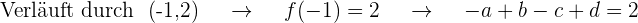 einsetzen und gleich dem Wert der Ordinate der Punkte, die durch den Graphen gehen, setzen