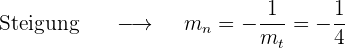 parallel zur Winkelhalbierenden des Quadranten ist, bedeutet das für die Steigung