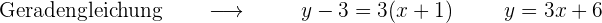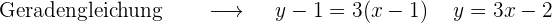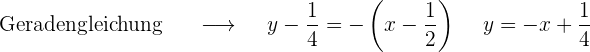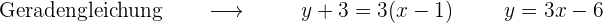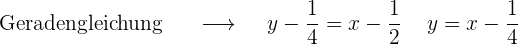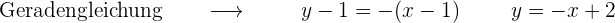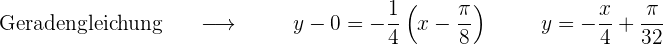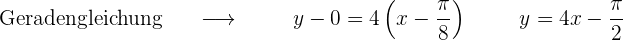 Wir erhalten die Gleichung der Geraden an diesen Punkten